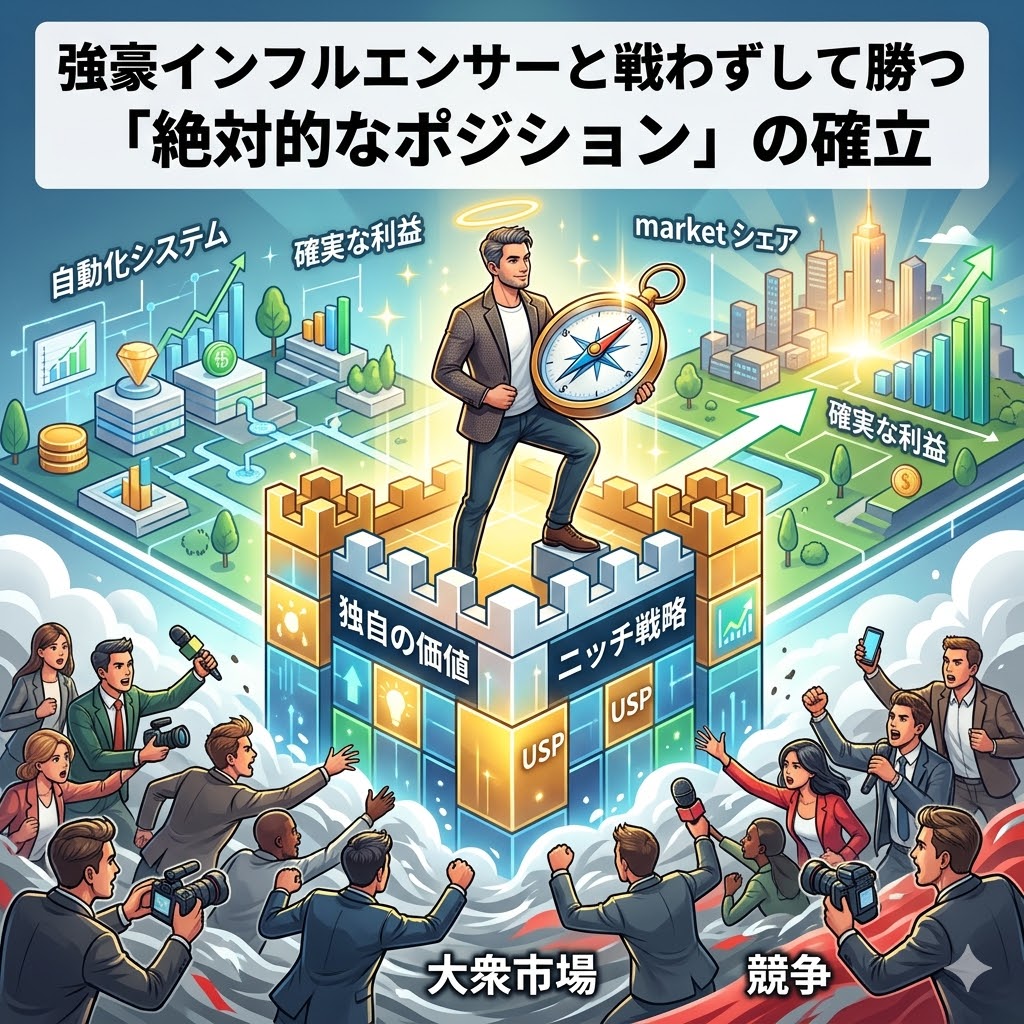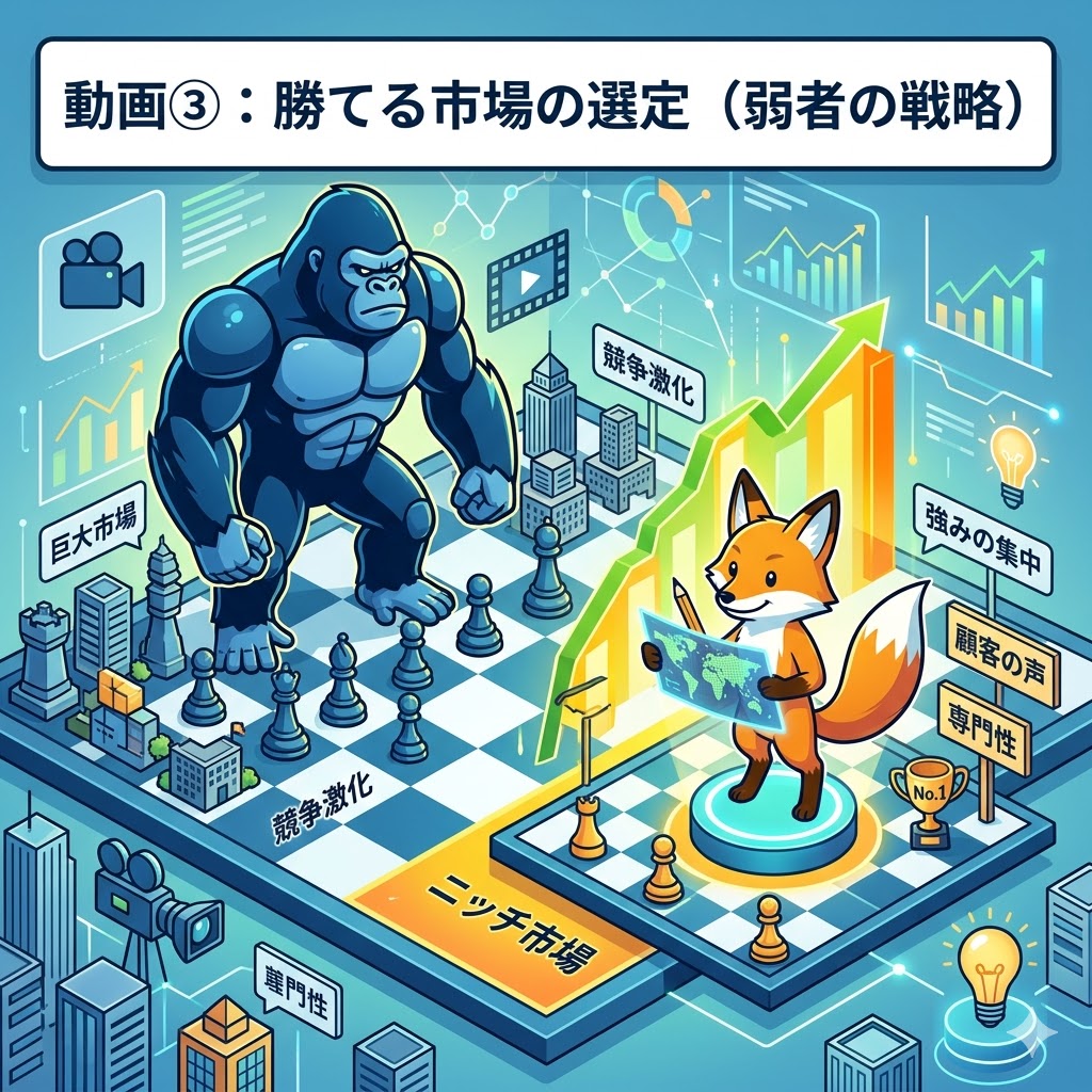 「誰にでも役立つ」は「誰にも刺さらない」時代です。見つけた「強みの種」を、ただ闇雲に発信するのではなく、「どの市場の、どんな悩みを抱えた人に届ければ勝てるのか」という弱者の戦略(ニッチ戦略)をマスターします。ありふれたプロフィールが激変し、たった一人の心に強烈に突き刺さる「勝てるUSP」が完成。同業者との比較から抜け出し、「あなただからお願いしたい」と選ばれる状態を作ります。